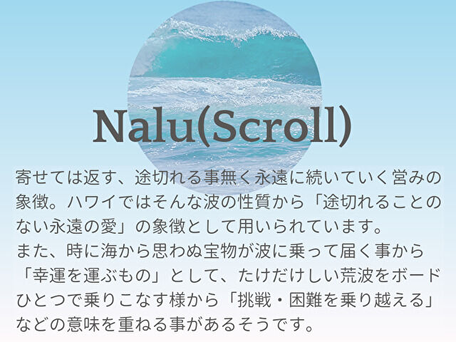 ハワイでは波は幸せやお宝を運んでくる縁起の良い象徴です。
